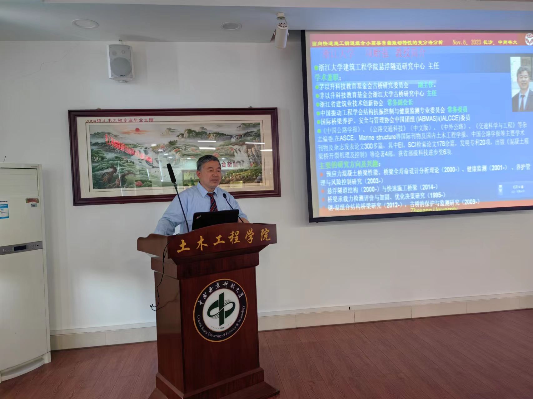 2023116日,浙江大学项贻强教授应邀在土木楼603会议室举行了《面向快速施工钢混组合小箱梁弯曲振动特性的变分法分析》学术报告会。学院副院长段绍伟教授(主持工作)、副院长王达教授、王解军教授、陈爱军教授、湛发益副教授、刘剑副教授、张聪副教授、王天鹏高级实验师、冯新高级实验师、占雪芳博士、张宇辉博士、陈建英博士、赵怡彬博士、姜旭章等老师,以及60余名师生参加了学术会议。会议由王达主持。