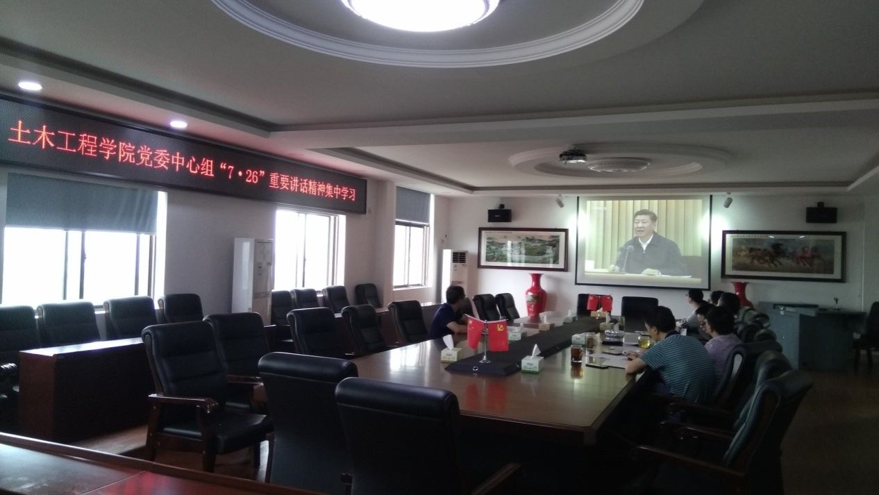 为学习习近平总书记重要讲话精神,迎接党的十九大,谨照学校党委的整体部署,土木工程学院党委中心组于2017年9月21日上午8:00在土木楼603会议室进行了“7·26”重要讲话精神集中学习。院党委尹健、段绍伟、江学良、易锦、吴海刚、王锦参加了本次学习,党委书记兼院长尹健主持并做中心发言,办公室主任支部书记马世嫒等参与此次学习。