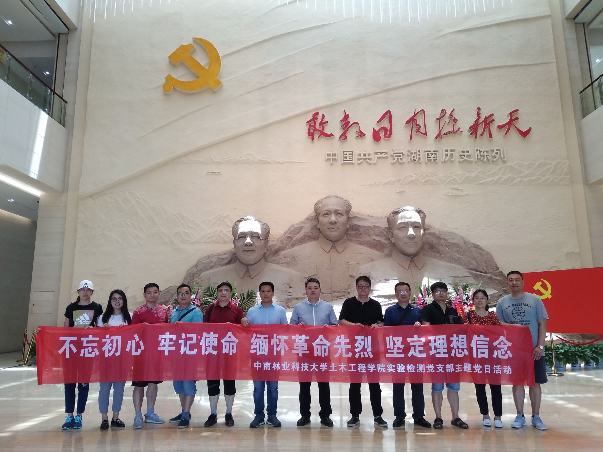 为进一步增强党支部的凝聚力和战斗力,培养党员勤奋上进、担当作为、勇于奉献的精神,在中国共产党成立97 周年之际,2018年6月10日,土木工程学院实验检测党支部全体党员及入党积极分子赴湖南党史陈列馆和雷锋纪念馆开展了以“不忘初心、牢记使命、缅怀革命先烈、坚定理想信念”为主题的党日活动,让广大党员们重温党史、缅怀先烈英雄事迹,接受心灵的净化洗礼。学院党委书记易锦、党委副书记吴海刚、副院长江学良以普通党员身份参加了该党支部的主题党日活动。