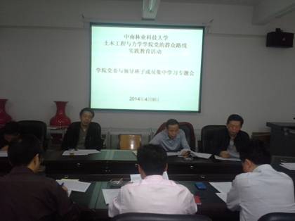 2014年4月9日晚上七点半,按照学校党委的统一部署与要求,我院在土木楼603会议室召开了学院党委和领导班子成员集中学习专题会,学院党委和领导班子成员和湖南中科大设计院有限责任公司处级领导共计12人参加了学习,学习由学院党委副书记(主持党委工作)尹健同志主持。