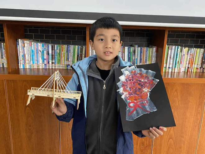 课堂上,“公益老师”们通过视频展示和实物讲解的方式,引导孩子们初步理解建筑工程原理,在志愿者们的帮助与指导下,小朋友们完成了升降国旗和斜拉桥模型的制作,他们在玩乐中提升了创造力和想象力,也培养了实践能力和团队意识。这场公益课堂不仅是知识的传递,更是一场关于团队与成长的实验。孩子们在争论中学会倾听,在失败中尝试创新,稚嫩的小手紧握尺笔,丈量着梦想的轮廓。一位志愿者感慨:"他们教会我们,工程师不仅是造房子的人,更是编织希望的人。"