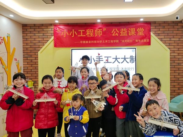 “小小工程师”公益课堂的开展,不仅丰富小朋友们的课余时间,同时激发他们对土木工程行业的兴趣,为未来加入祖国基础设施建设伟大事业埋下了梦想种子。此次活动也充分展示中南林业科技大学土木工程学院学子立足专业的使命感和责任感,同时也更加坚定志愿者们投身公益、服务社会的决心。