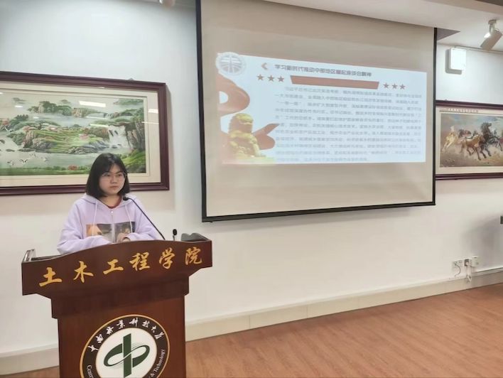 首先,由实践部副部长郭琪主持“习近平总书记考察湖南系列讲话精神”宣讲会,她提到学习习近平总书记在湘考察的重要指示精神,要引导学生立报国强国大志向,努力成为民族复兴的栋梁之材,同时指出,作为学生干部,应树立伟大志向,努力堪当强国建设、民族复兴大任的可靠接班人。
