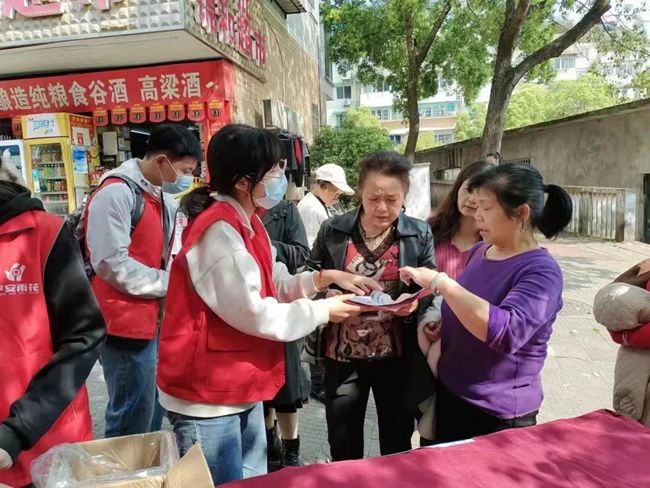 第一组志愿者向社区人员们分发甲流宣传手册、口罩和酒精。甲流高发的时期,志愿者们向社区人员们介绍了甲型流感病毒的传染特性和感染症状,并提醒大家预防事宜。口罩、酒精也是预防甲流病毒的必备物资;第二组志愿者则前往小区各个角落,细心地清理每一处的垃圾,墙上的广告、电线杆上的污渍,在志愿者们的耐心清理下,小区环境样貌焕然一新。