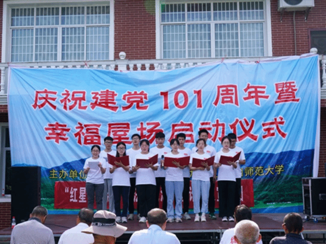 最后,在全体到场人员合唱《没有共产党就没有新中国》的铿锵有力的歌声中,结束了本次庆祝建党101周年暨幸福屋场启动仪式。