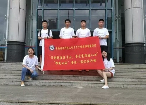 7月15日中午12点,中南林业科技大学土木工程学院赴湖南省永州市道县上关村“法制讲座进乡村,普法宣传暖人心”依法治国宣讲团在学校图书馆前集合后顺利出发。