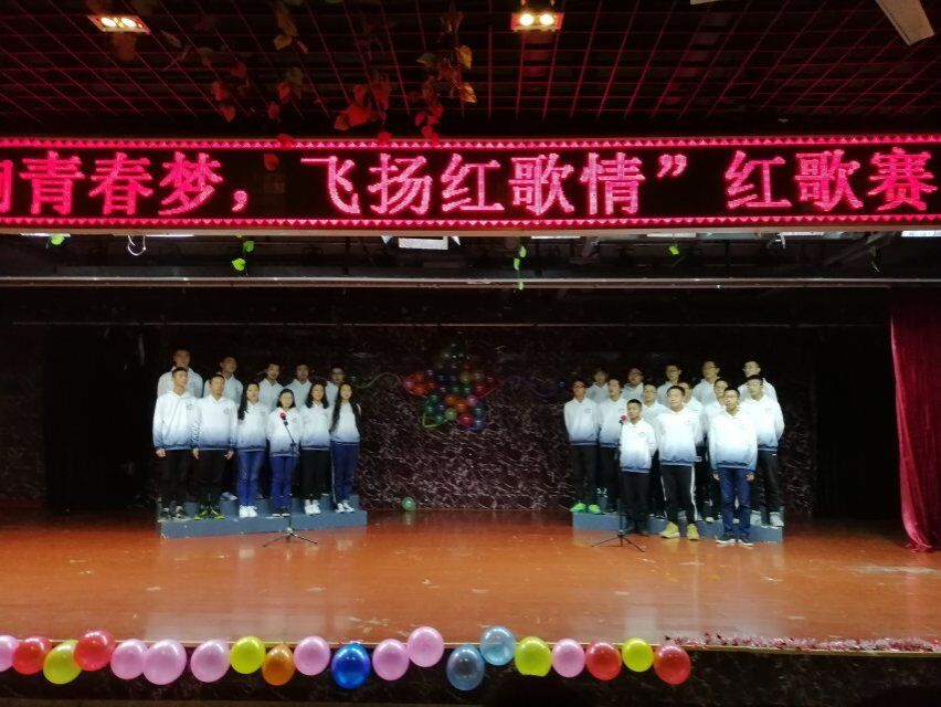 本次比赛,每班准备两首歌曲,一首为抽签选中的红歌,另一首为班级自选的正能量歌曲。舞台上,同学们挺拔的身姿蓬勃着青春的活力,嘹亮的歌声展现出爱国的热血。他们的表演极具感染力,雷动的掌声一次又一次爆发在会场。《仰望星空》抒发了同学们作为追梦者的决心与对未来的美好期望,《在那桃花盛开的地方》为我们展示了一个令人心往神怡的心灵胜地,《我爱你中国》唱响了多少华夏儿女对养育自己的祖国深深的热爱……这一首首扣人心弦的歌曲,皆让人心潮澎湃。