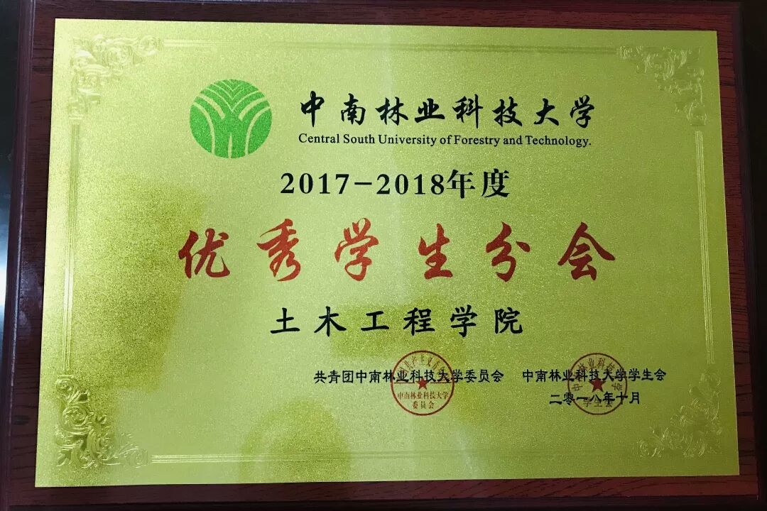在中南林业科技大学2017-2018年度优秀学生分会评选中,我院学生会荣获优秀学生分会称号,这是对这一学年我院学生会工作的充分肯定,同时也督促我们在未来一年度的学生工作在继承优秀的同时要做得更好。