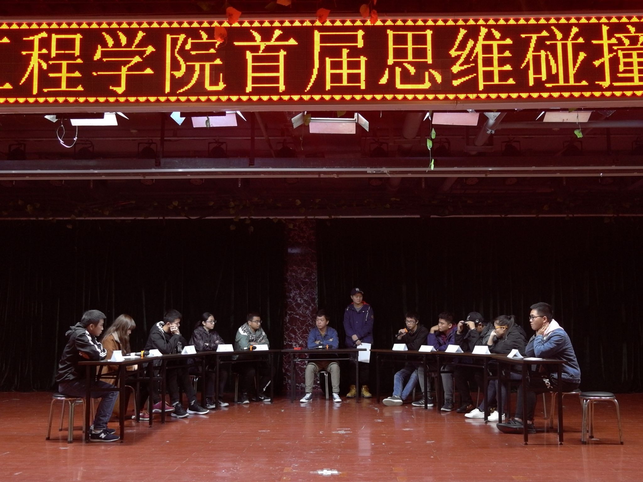 2017年11月19日下午2:00,土木工程学院首届思维碰撞大赛在大学生活动中心举办。我院团委学生会学生会主席黄博扬,团委副书记郭帅,红帽子志愿者协会会长李文凯,粤时代粤语协会会长王培瑜以及各部门部长、副部长出席并担任了本次嘉宾和评委。