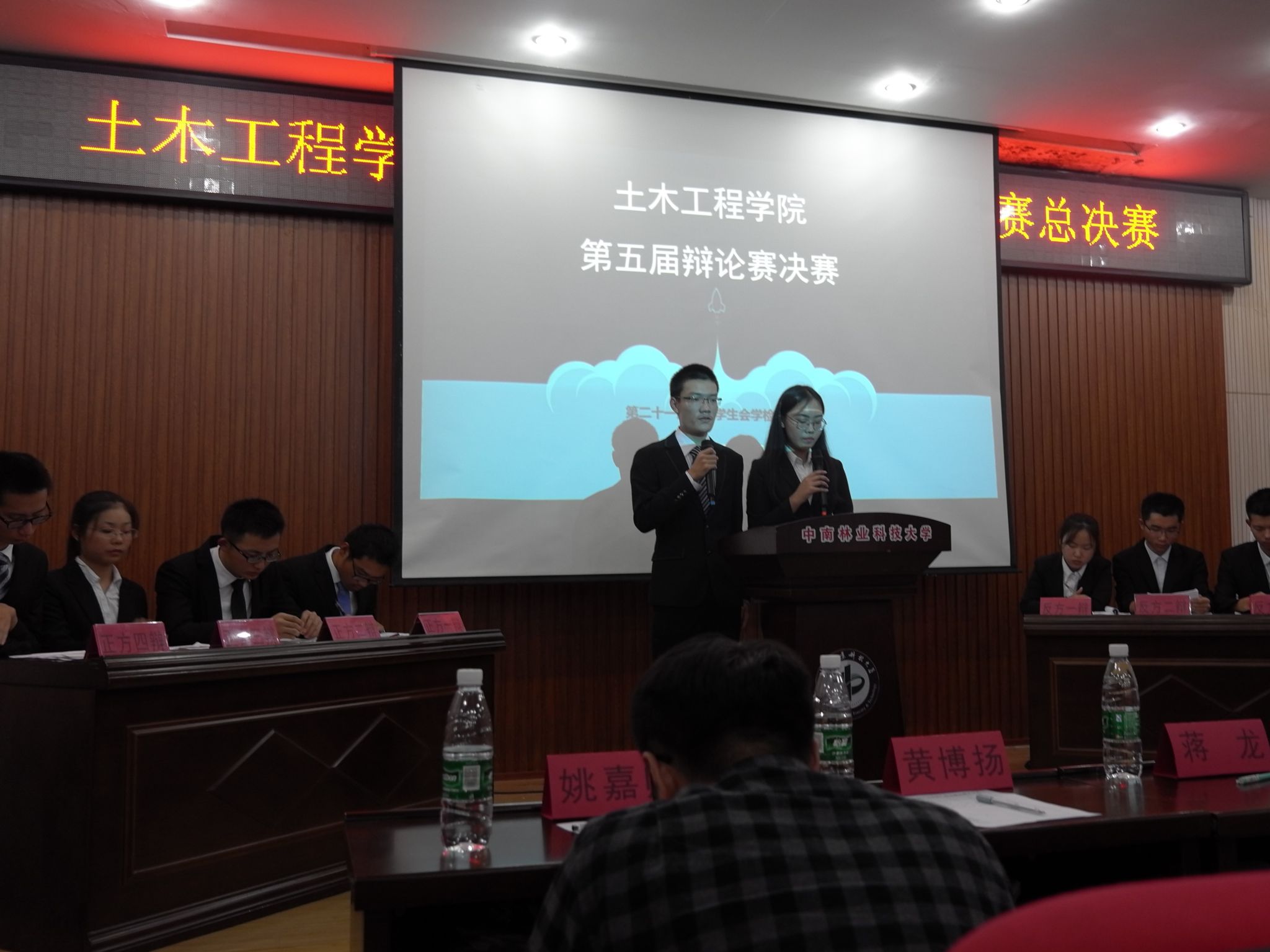2017年10月27日晚7点,中南林业科技大学土木工程学院第五届土木杯辩论赛决赛在土木楼501隆重举行,团委书记、2014级辅导员蒋龙老师,2017级辅导员邓云老师,院研究生会主席姚嘉帅,团委学生会常务副书记喻博慧以及团委学生会主席黄博扬莅临本次比赛。担任本次辩论赛评委是李媛媛、赵徽悦、宋盼、郝汉。