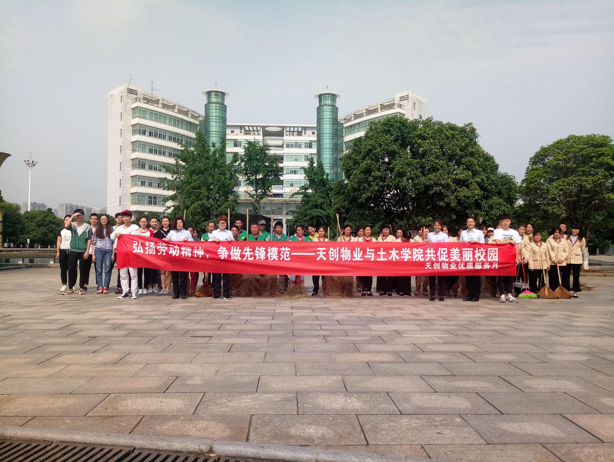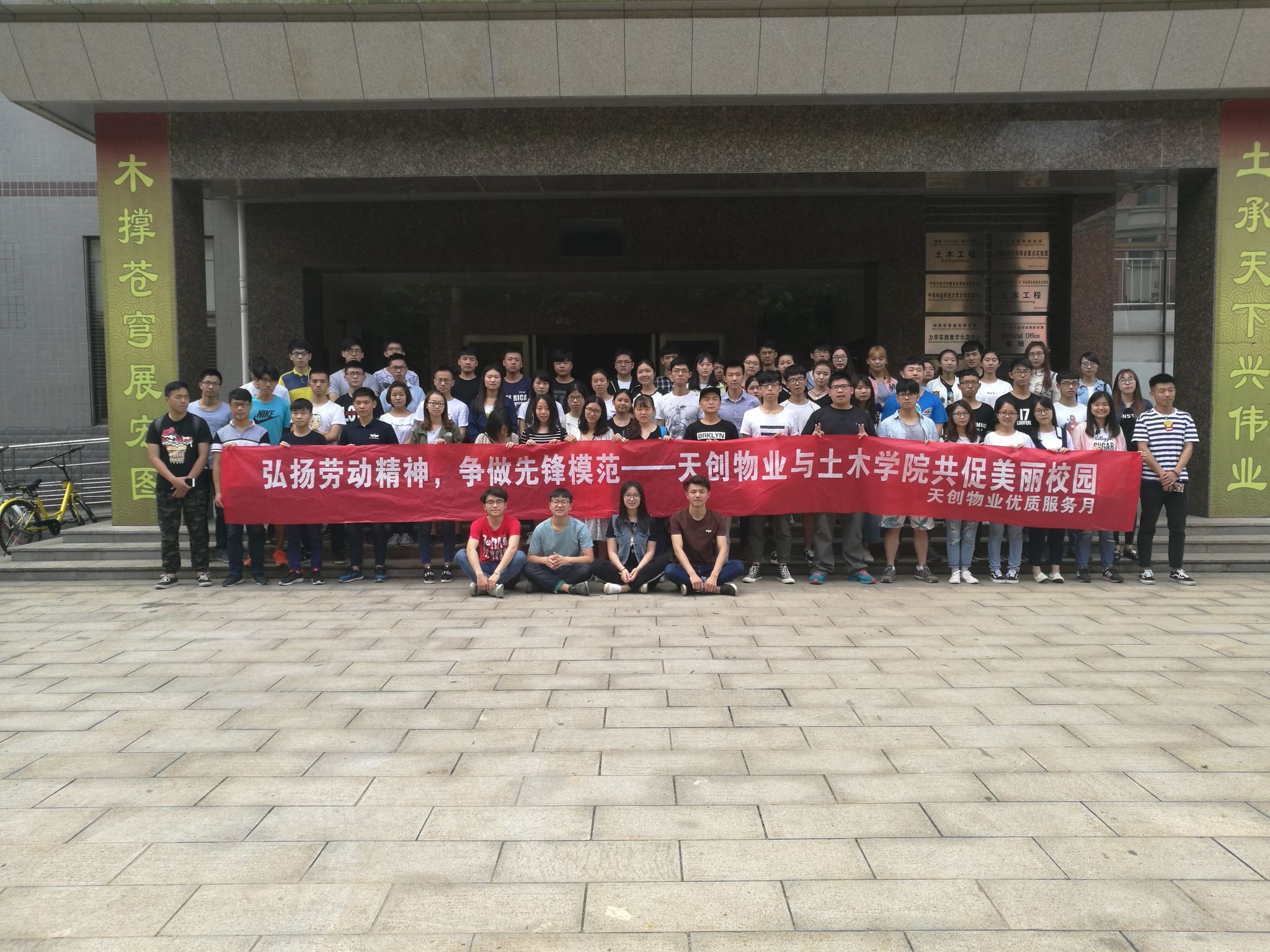 2017年5月6日上午9点,为了发挥我院优秀共青团干部与优秀共青团员的先锋模范作用,进一步美化校园环境,营造良好的学习生活氛围,我院团委学生会与天创物业共同举办了一次打扫校园的公益活动。参与此次公益活动的有:土木工程学院团委学生会主席团,书记处,各部门部长、副部长,以及大一至大三年级全体优秀共青团干部、优秀共青团员。