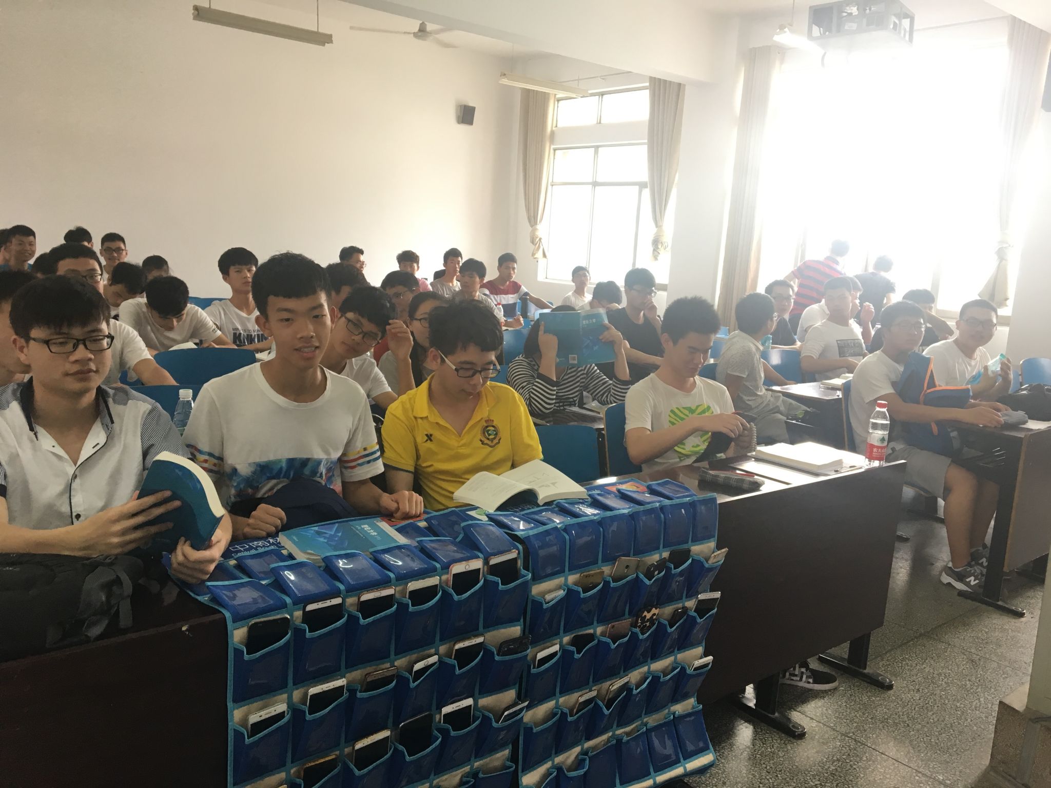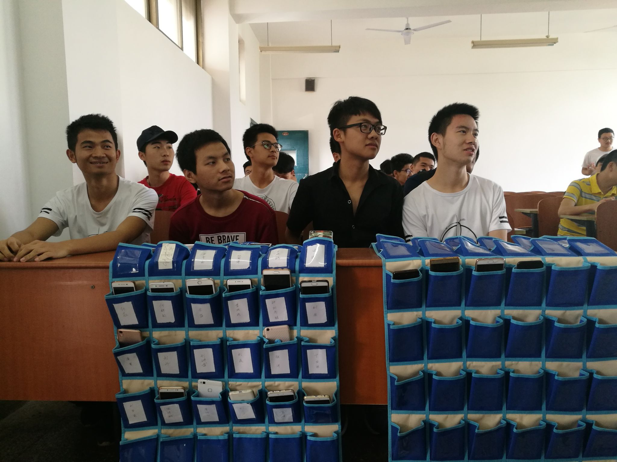 在学院的积极倡导与督促下,我院各班级均在上课时间使用了“手机收纳袋”。各个班级在每个小口袋上分别贴上学生的姓名和学号,在上课前,学生们把手机统一调至关机或静音模式,放进自己专属的小口袋里,并将“手机收纳袋”挂于讲桌边缘,课后再领回手机。我院开展的"无手机课堂,不做低头族"学风建设活动,得到我院师生的积极配合与高度评价,学生们在自觉履行的过程中也深刻感受到学风建设的魅力,加强了学习氛围。