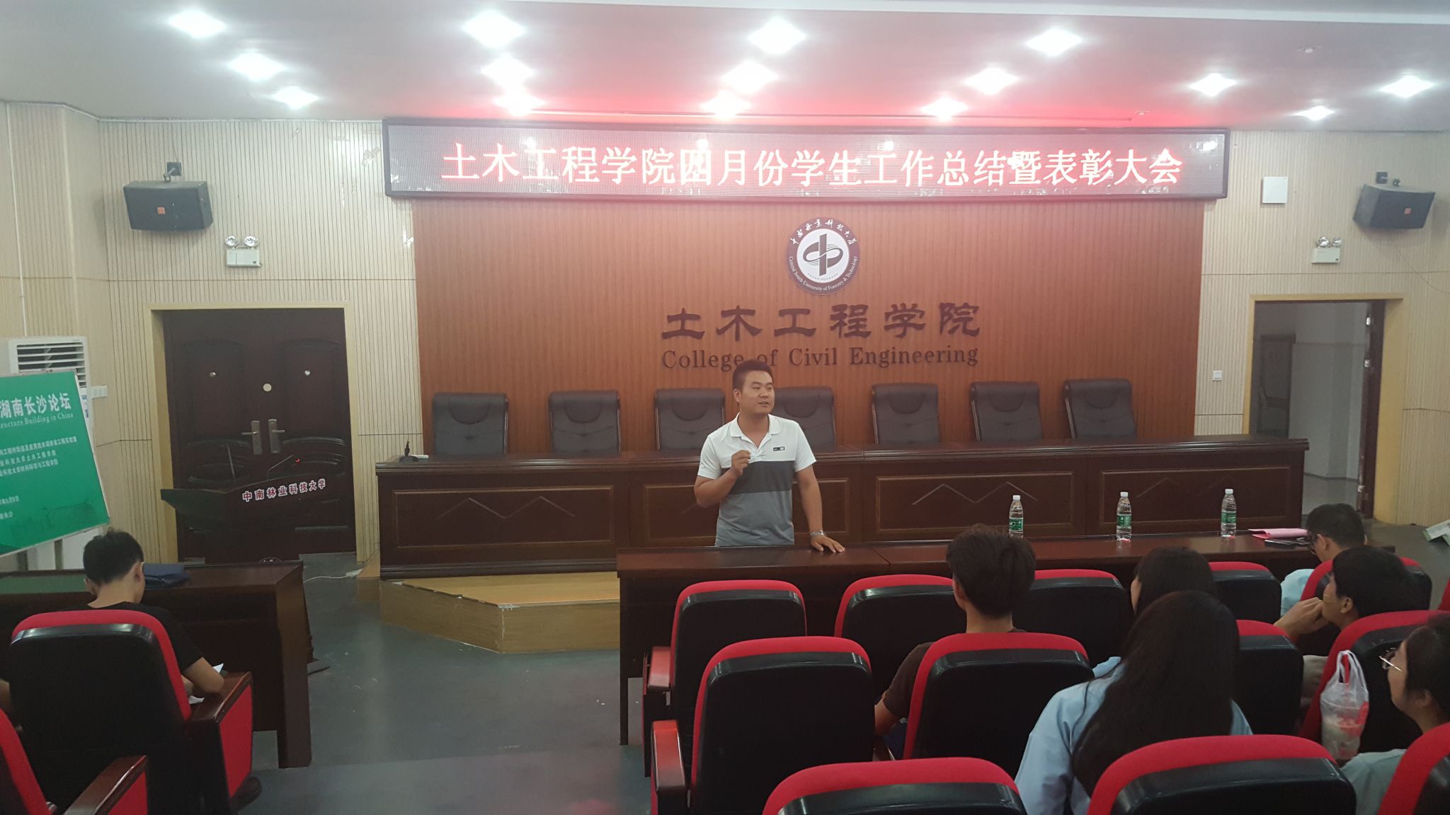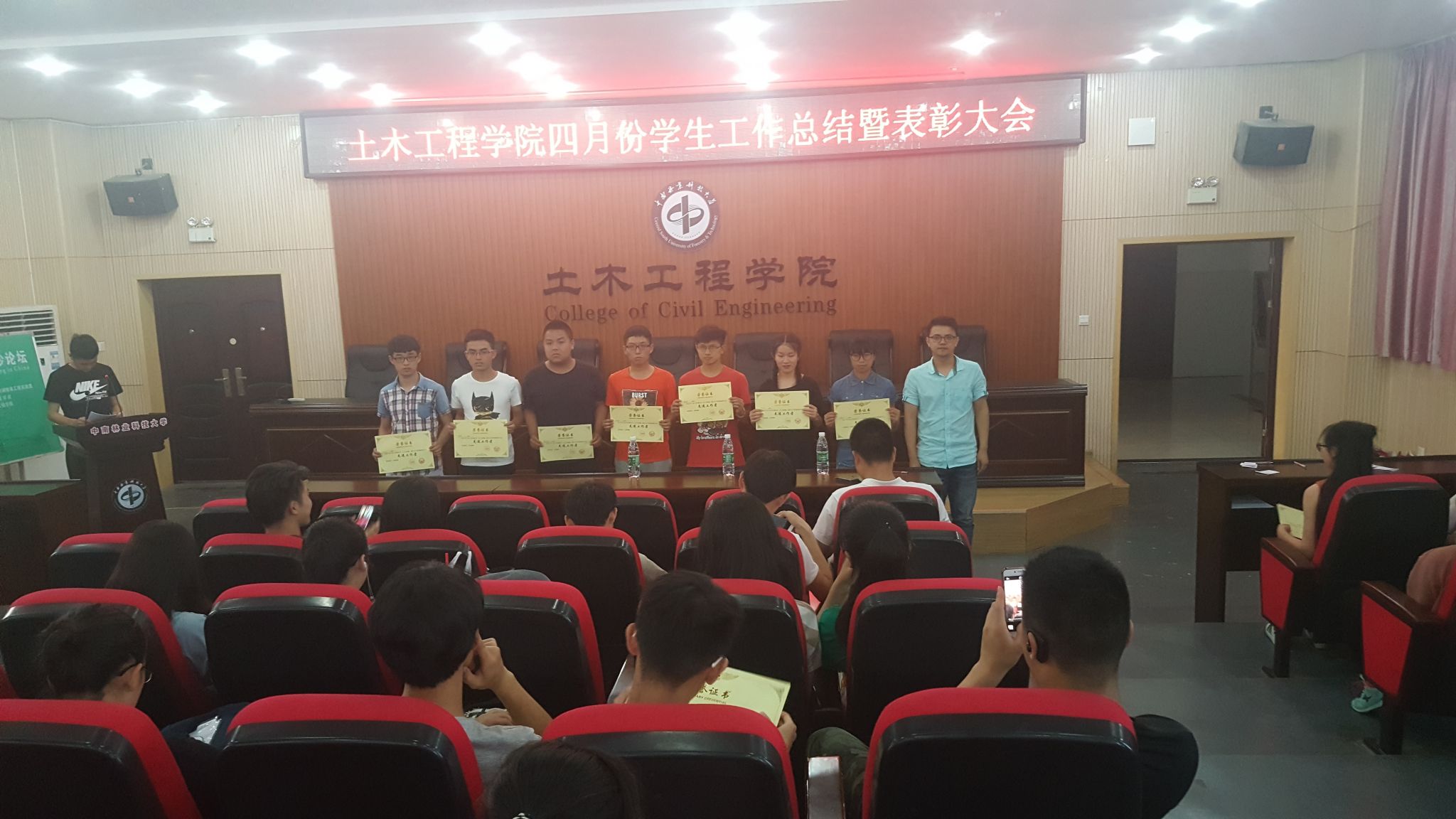 2017年5月16日下午6:30,土木工程学院2017年四月学生工作总结暨表彰大会在土木楼501召开。我院团委书记、2013级辅导员蒋龙老师,2015级辅导员陈欢老师,辅导员李伟坡老师出席了本次会议。我院团委学生会主席团、书记处以及各部门部长、副部长,各班级班长、团支书参加了本次会议。