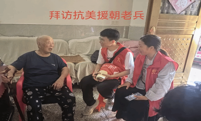 我们还拜访了郭志云老同志,现年92岁的郭志云老人谈起自己的当兵经历,一下便拉开了自己的话匣子。那是1949年秋季,郭志云母亲去世不久,一支解放军队伍从家门口经过,当时只有17岁的他毅然参军随部队来到广西横县。在部队,这个农村娃吃苦耐劳,在1950年、1951年的广西剿匪中因英勇善战,不怕牺牲,荣立大功一次。1953年,郭志云所在的部队跨过鸭绿江,参加抗美援朝,谈起在朝鲜的战场上,这位耄耋老人津津乐道,把我们似乎也带到了曾经那个战火纷飞的战场。津城反击战是这位老兵最难忘的一次战役。并因战斗突出荣立三等功。他还告诉我们,当代大学生要有吃苦精神,特别是共产党员,要比别人吃更多的苦。这让我深受启发,我们愿意通过努力和汗水,让我的青春在奉献中绽放出绚丽的光彩。