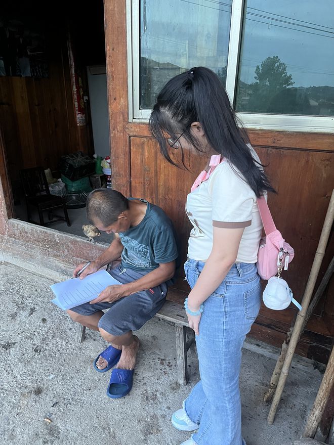 实践团成员中午回来休整过后,一起出发去镇上进行有关乡村振兴的调研活动。根据调研目标设计问卷,确保问题覆盖所有关键领域,实践团成员提前准备好了调查问卷,沿着镇上的道路按照计划向镇上各年龄段、各种各样的人员发放问卷。 为了确保问卷的顺利进行,实践团成员会及时解答受访者的疑问并实时收集问卷数据,确保数据的完整性和准确性,同时也会对调查内容进行文字记录,以确保能够获取更完整的数据。 在回到民宿后, 实践团成员对收集到的数据进行初步整理,如去除无效数据、检查数据一致性等, 对调研内容进行编码和分类,提取关键信息。