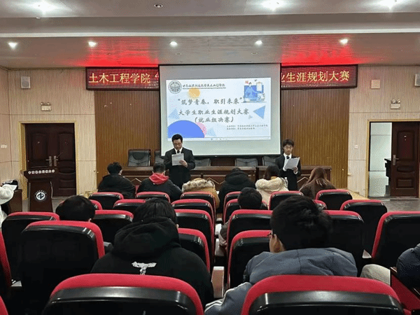为引导大学生树立正确的就业观,帮助我院学子明确目标,提高职业发展的机会,做实做细学生就业指导,促进学生高质量充分就业,12月19日和20日晚上7:00,我院在土木楼501会议室分两场举行“筑梦青春,职引未来”大学生职业生涯规划大赛。学院组织员兼就业专干蒋龙、2023级辅导员张琼、2021级辅导员邓云、2020级辅导员梁茜薇、2022级辅导员沈浙、2023级辅导员义子楚担任评委,各团学骨干及各班学生代表参加此次活动。