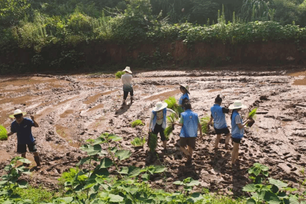 刚开始,促进团成员们还不熟悉这项工作,但是当地的农民们没有责怪成员们,反而手把手传授插秧技巧,这令成员们感受到了二酉苗族乡农民的淳朴。