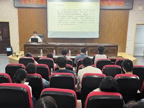 会议邀请参与过2022年暑期“三下乡”社会实践服务的三位代表成员作主讲。他们依次从组织领导、活动开展、服务保障、机制创新、成果展示等方面汇报了暑期社会实践的开展情况,分享了实践过程中的成长与收获、感悟与感动,以生动鲜活的实例诠释着土木青年用脚步丈量祖国大地,用眼睛发现中国精神,用耳朵倾听人民呼声,用内心感应时代脉搏的奋斗与担当。