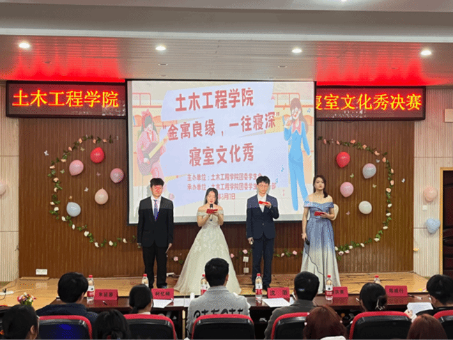 2023年3月17日19:00,我院“金寓良缘,一往寝深”寝室文化秀决赛在土木楼501报告厅顺利举行。学院团委书记沈浙以及学院团学会主席团出席并担任了本次活动的评委,各中心主任、副部长们及2021级、2022级各班学生代表参加了本次活动。