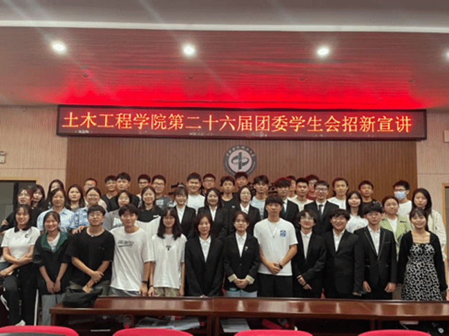 9月25日12:30,学院第二十六届团委学生会招新宣讲大会于土木楼501报告厅顺利举行。2022级辅导员兼团委书记沈浙、全体团学会干部以及2022级全体新生参加大会。
