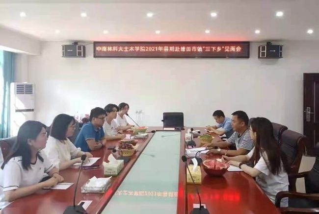 7月12日下午,调研团在塘田市镇政府举行了“中南林科大土木学院2021年暑期赴塘田市镇‘三下乡’见面会”。塘田市镇副书记、镇长蒋凯兵,副镇长石功胜,党委委员王玥,中南林业科技大学土木工程学院党委组织员兼就业专干蒋龙、2019级辅导员张琼、2017级辅导员兼团委书记邓云以及调研团的9名成员出席了此次会议。
