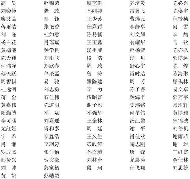 根据《深化新时代教育评价改革总体方案》、《中南林业科技大学学生评价改革工作方案》(中南林发〔2021〕40号)、《中南林业科技大学学生评优评奖管理办法》(中南林发〔2017〕110号)、《中南林业科技大学土木工程学院2023~2024学年评奖评优细则》、《中南林业科技大学土木工程学院本科学生综合素质测评办法》等文件的要求,经本人申请、班级评议小组综合测评、辅导员复核、学院学生资助工作领导小组评审,下列同学作为2025届优秀毕业生推荐人选,现将名单予以公示: