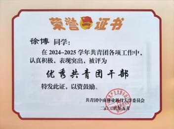“肩鸿任钜踏歌行,功不唐捐玉汝成”,中南林业科技大学土木工程学院2023级道桥专业学生徐博,以这句诗为初心指引,在预备党员、班级学委、学院团委学生会事务部副部长的多重身份中,用奋斗书写青春答卷,累计斩获国家级奖项1项、省级2项、校级14项、院级4项荣誉。