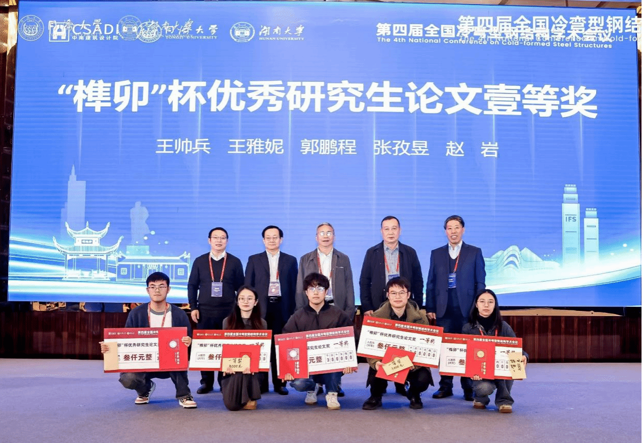 会议期间还举办了由湖南榫卯建筑科技有限公司和安徽中科榫卯建工集团有限公司赞助的“榫卯”杯优秀研究生论文奖评选,共选出43篇优秀论文,其中特等奖3名,一等奖5名,二等奖9名和三等奖26名。我院研究生获得一、二等奖各1名,三等奖4名。