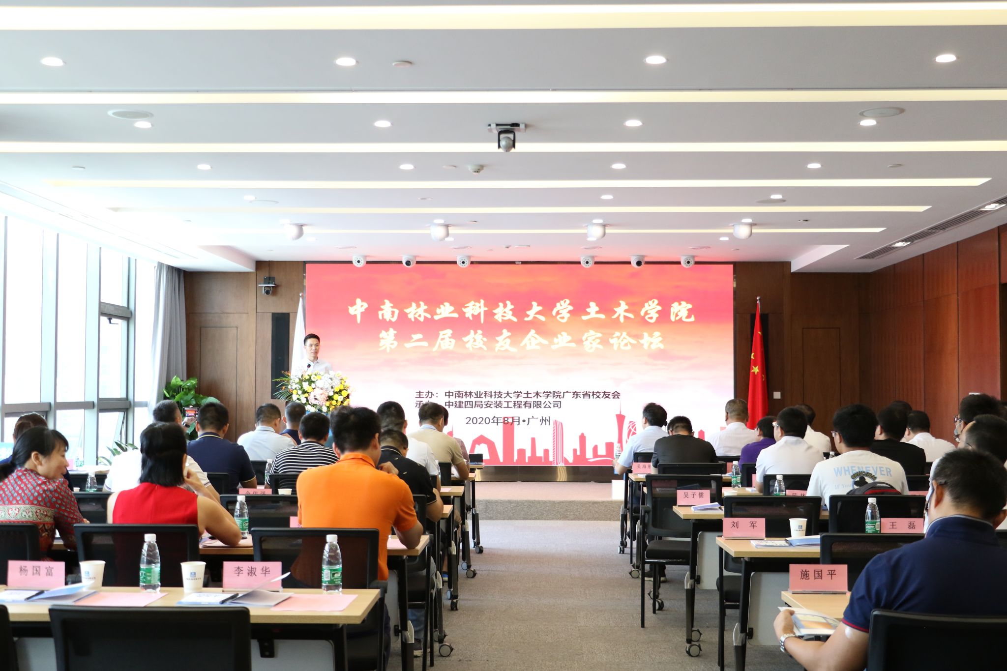 8月8日上午,由中建四局安装工程有限公司组织承办的中南林业科技大学土木工程学院第二届校友企业家论坛在广州顺利召开。中南林业科技大学珠三角地区50余位优秀校友代表参会,我院院长尹健教授一行10人出席活动。受中建四局安装工程有限公司董事长陈朝静校友委托,中建四局安装工程有限公司党委副书记兼工会主席张伟先生致欢迎辞并主持论坛。