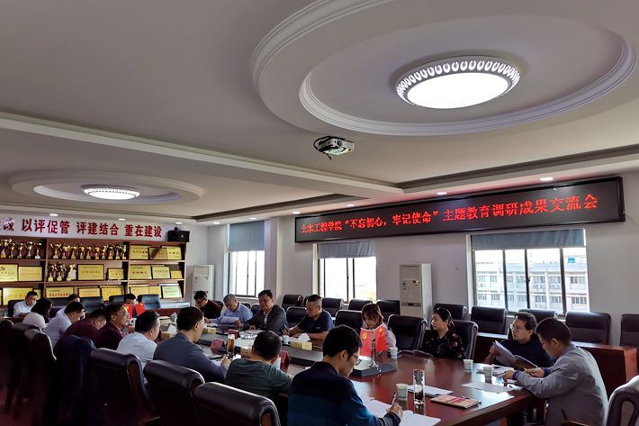 2019年10月21日下午,土木工程学院“不忘初心、牢记使命”主题教育调研成果交流会在土木楼603会议室召开。学院党委委员、系部主任、支部书记参加,交流会由学院党委书记易锦主持,学校主题教育办第四督导组组长余学广同志、成员吴建国同志应邀到会指导。