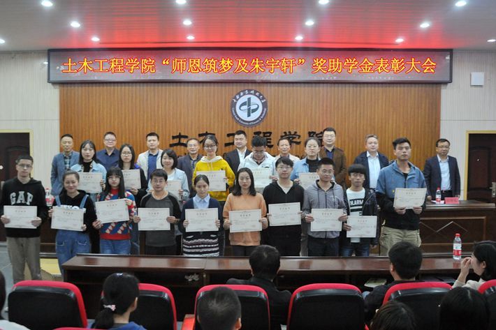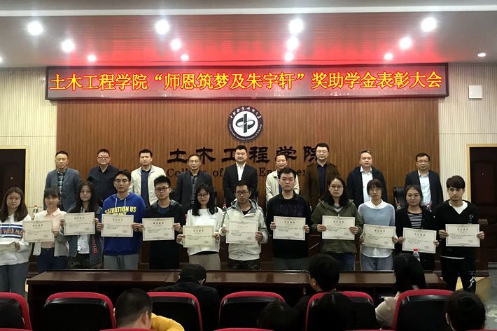 “师恩筑梦及朱宇轩”奖助学金由土木工程学院领导倡议,全体教职员工、学工办辅导员老师积极行动,自愿捐赠爱心款、并由大型企业、社会团体、慈善家、杰出校友共同捐资于2016年设立,旨在帮助我院品学兼优和家境特别贫困的学生完成学业,鼓励学生德智体美劳全面发展,激发学习专业知识和投身土木事业的热情,增强开拓和创新的意识;同时广泛宣传湖南天鉴工程项目管理有限公司邵阳分公司的企业文化,进一步促进校企之间的合作关系。此项奖助学金的设立充分体现了学院领导和老师对学生的关怀、关爱之情,展示了我院学子应有的蓬勃朝气和激昂向上的优良精神风貌,营造了激励先进、学习先进、争当先进的良好氛围,2019年是“师恩筑梦及朱宇轩”奖助学金颁奖的第4个年头,受益学生总计99人次,获奖学生93人,支付的奖助学金近20万元,在收益学生中,被985、211高校、一本高校录取的硕士研究生20人,进入央企、事业单位工作的24人,在校生41人。