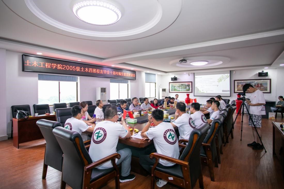 6月8日下午,在土木楼603会议室举行了土木工程学院2005级土木工程4班校友毕业10周年师生联谊座谈会。学校校友办主任张仕吉、土木工程学院党委书记易锦、土木工程学院党委副书记吴海刚、环境科学与工程学院党委副书记屈俊林、外国语学院肖琼老师和土木工程学院王解军教授、唐小弟教授、易文教授、陈爱军副教授、湛发益副教授、任森智、蒋龙等老师及土木工程4班全体同学参加了座谈会。