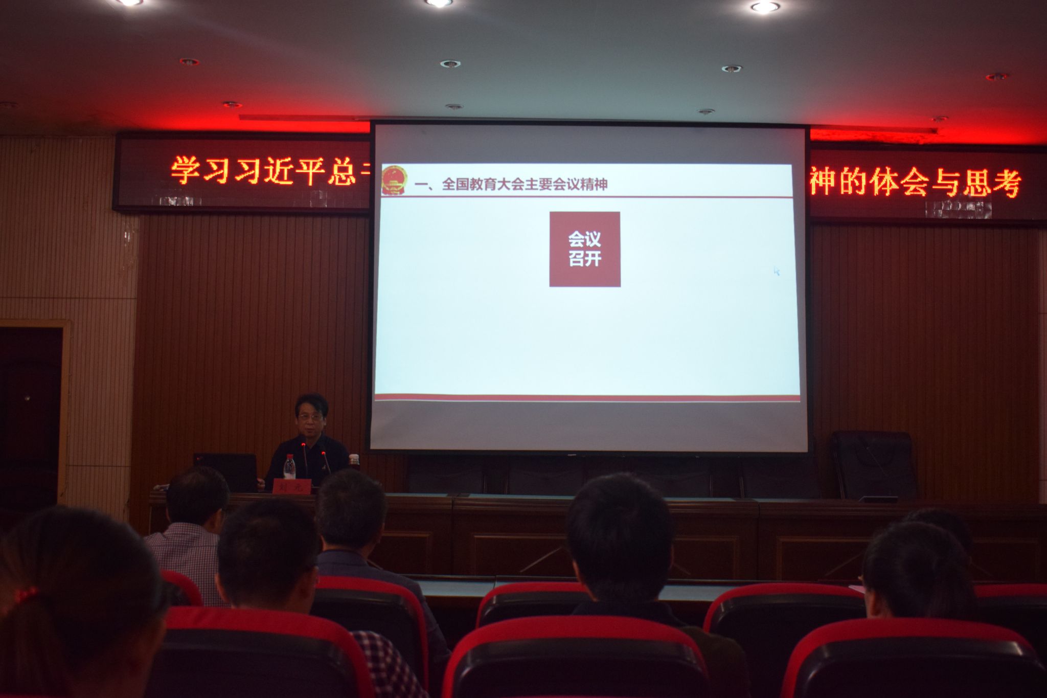 刘元从四个方面进行了授课。首先,他介绍了全国教育大会的主要会议精神,强调了教育的定位和教育工作的根本任务,详细解读了坚持党对教育事业的全面领导,坚持把立德树人作为根本任务,坚持优先发展教育事业,坚持社会主义办学方向,坚持扎根中国大地办教育,坚持以人民为中心发展教育,坚持深化教育改革创新,坚持把服务中华民族伟大复兴作为教育的重要使命,坚持把教师队伍建设作为基础工作等九个“坚持”。他希望全院教师牢记培养什么人,是教育的首要问题。教育必须把培养社会主义建设者和接班人作为根本任务。其次,刘元强调了高校根本任务是立德树人。他提到立德树人是高校的立身之本,也是新形势下对高等教育的根本任务,必须“扣好人生的第一粒扣子”。立德树人的关键是教师,而其主体是学生,二者相互配合,才能达到共同提高。同时,刘元重点讲解了人才培养的“六个下功夫”和“三个要”,希望全院教师从理想信念、爱国情怀、品德修养、奋斗精神等方面下功夫,在学生中弘扬劳动精神,树立健康第一的教育观念,全面加强和改进学校美育等。随后,刘元副校长为大家讲解了何为习近平心中的“好老师”,即为有理想信念、道德情操、扎实知识、仁爱之心的四有好老师。习近平总书记曾强调,“百年大计,教育为本。教育大计,教师为本”,这足以体现出教师在他心中的重要地位。最后,他结合分管工作重点谈了学校师资队伍建设的思考。他详细剖析我校当前师资队伍存在的主要问题和短板后,提出了三个方面举措和建议。他希望大家团结起来,在学校党委坚强领导下,进一步增强“四个意识”,牢固树立 “四个自信”,以高度的责任感、强烈的使命感、扎实的作风投入到自身的工作和学习中去,为学校事业发展贡献力量。