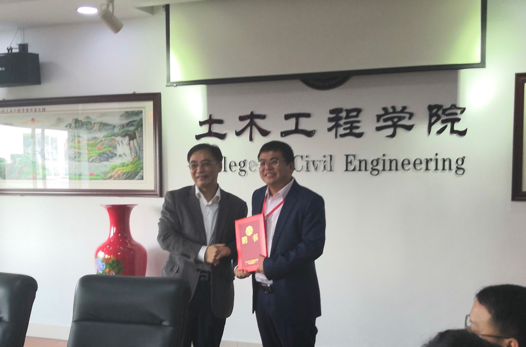 江学良首先介绍到场嘉宾及校友代表,向各位校友致以热烈欢迎和诚挚问候。随后,尹健作《同心同行同路,共创共享共赢》的工作报告。他详细介绍了学院30年办学的发展历程、学院基本情况、近年来取得的发展成绩、学科专业特色及发展愿景。他代表学院2000余名师生员工向大力支持和关心学院发展建设的校友和社会各届人士表示衷心感谢,期待未来10年学院和广大校友均取得更大发展。期间,尹健为浙江润城环保科技有限公司总经理杨为环颁发了客座教授聘书。他对该公司给予学校的大力支持表示感谢,并希望以本次校企合作协议的签署为契机,深度合作,共同发展,努力实现“校企合作、产学共赢”。同时,段绍伟向杨为环授予浙江润城环保科技有限公司—中南林业科技大学“研究生培养创新基地”、“本科生专业实习教学基地”牌匾。