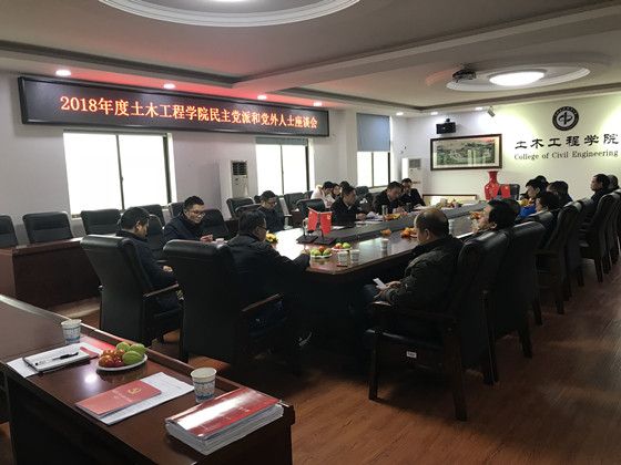12月28日下午2:30,土木工程学院在土木楼603会议室召开了2018年度土木工程学院民主党派和党外人士座谈会。学院领导班子成员、院党委委员、院各民主党派及党外人士和各系部主任和党支部书记共计30余人参加本次会议。会议由院党委书记易锦主持。