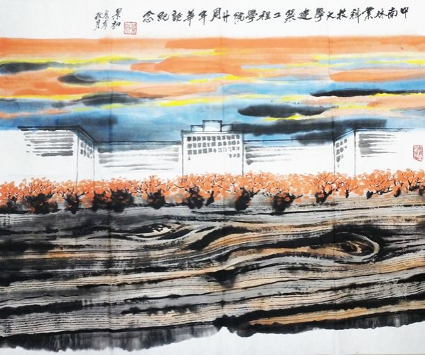 在纪念中南林业科技大学办学60周年进入倒计时136天之际,我院退休教授胡景初先生为庆祝建筑工程学院(土木工程学院前身)成立二十周年华诞专门创作了一幅国画,赠与土木工程学院。
