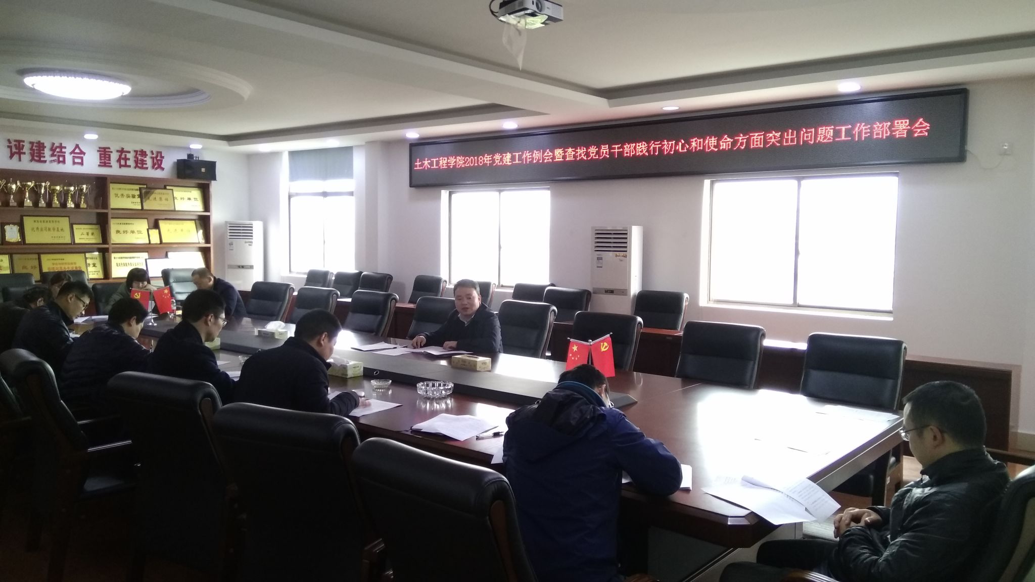 为全面贯彻落实党的十九大和十九届一中、二中、三中全会精神,3月21日中午12:30在土木楼603会议室召开了学院2018年党建工作例会暨深入查找党员干部在践行初心和使命方面突出问题工作部署会。会议全面总结了我院2017年的党建工作并部署了2018年党建工作任务。会议由院党委书记易锦主持,学院全体党支部书记参加会议。