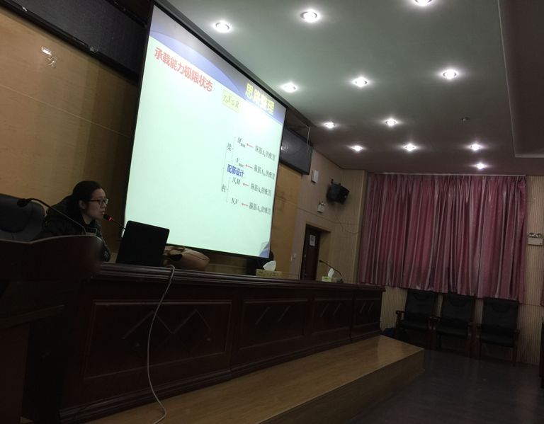 首先,土木楼501报告厅座无虚席,建筑工程教研室成洁筠老师的结构手算公开示范课正在举行。来自建工教研室全体教师和部分本科生共计100余人聆听了成老师的讲课。整堂示范课,成洁筠老师思路清晰,自然流畅,重难点突出,层层递进,充分考虑到重难点理解过程中会出现的障碍,让人如沐春风。其PPT展示制作精良,图文并茂,赢得了师生的一致好评。再者,力学教研室王荣海老师的示范课正同步在土木楼403教室举行,力学教研室全体教师参加。王老师全程采用板书的形式,声情并茂,气氛活跃,将复杂的力学问题讲解得通俗易懂,朴实无华的教学风格使在座的各位老师受益匪浅。此外,学院其他教研室也均就课程教学组织、毕业设计、实验教学等主题进行了热烈的交流和研讨。