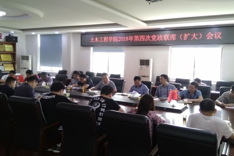 5月3日下午2:30至3:30,我院在土木楼603会议室召开了2018年第四次党政联席(扩大)会议,传达近期学校重要会议精神,布置学院5月份工作。会议由学院党委副书记吴海刚主持,学院党政领导班子成员、院长助理、教研室正副主任及各党支部书记等30余人参加了本次会议。