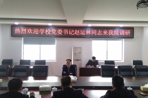 2017年10月23日下午,学校党委书记赵运林教授及学校党政办公室秘书廖乐平来我院进行调研。学院领导班子成员参加了此次调研活动。