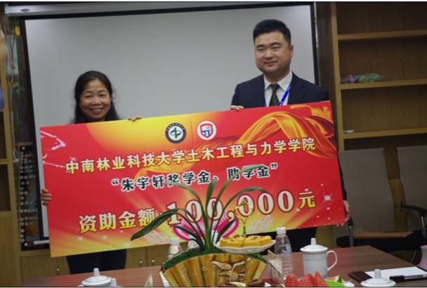 学工部副部长徐见代表学校接受朱宇轩总经理特为土木工程与学院设立的朱宇轩奖助学金,奖助学金额十万元。朱道弘副校长代表学校为朱宇轩总经理颁发了捐赠证书,并接受了邵阳电视台新闻综合频道的专访。