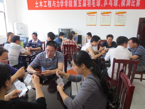 为丰富校园文化生活,提高教职工身体素质,促进教职工开展健身文体活动,倡导全体教职员工积极锻炼,增强体质,健康工作,幸福生活。2013年5月11日,我院第五届教职工羽毛球赛、乒乓球、棋牌比赛在校体艺馆和土木楼工会活动室举行。在院领导的带头参与下,教职工积极训练踊跃参赛,比赛包括羽毛球、乒乓球、扑克升级、象棋、围棋、飞镖等多个项目。