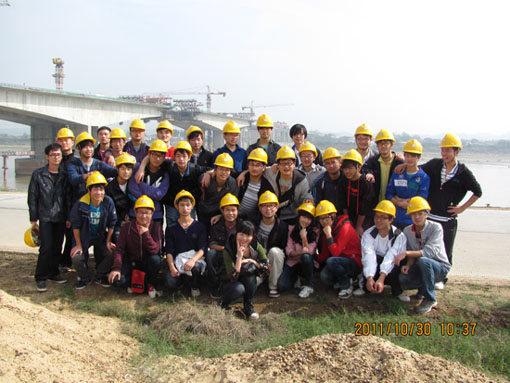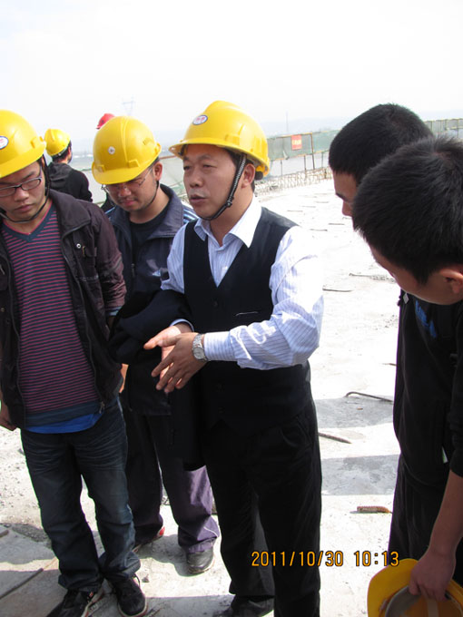 10月30日上午,天气晴朗,阳光明媚。我院2010级土木工程实验班全体同学在班主任老师贺国京教授带领下,专程前往长湘高速公路第三合同段湘江特大桥施工现场进行认识实习活动。