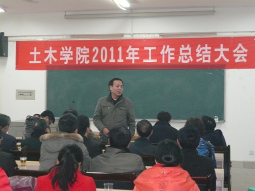 2011年12月29日下午,我院在逸夫楼六楼会议室召开2011年度干部述职及年终工作总结大会,学院全体教职工参加了会议。会议由总支书记刘梦飞主持。