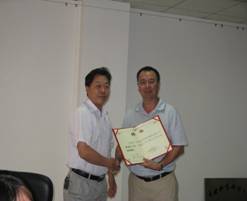 图1 校企双方进行合作商谈 图2 贺国京院长向梁荣照总经理颁发兼职教授聘书