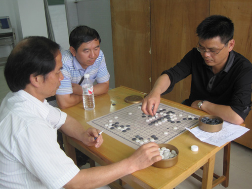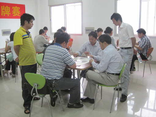 经过一天的激烈角逐,到下午6点,比赛在愉快、友好的气氛圆满结束。最后,乒乓球男、女冠军由鄱胜强和熊微微老师获得,羽毛球男、女冠军由刘思思和宿燕老师获得,李明和余玲玲老师老师获扑克(升级)冠军,王锦老师获中国象棋冠军,赵建新老师获中国围棋冠军。