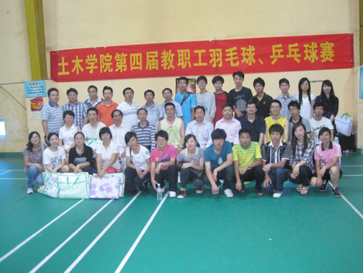 为活跃我院教职工精神文化生活,增强教职工体质,促进教职工身心健康,增加集体荣誉感和团队合作精神,2011年5月14日,土木学院第四届教职工羽毛球、乒乓球、棋牌比赛在宝马羽毛球俱乐部和学院工会活动室进行。报名参赛的教职工近40余名,比赛包括羽毛球、乒乓球、扑克升级、象棋、围棋等五项竞赛。
