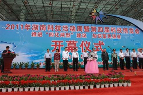 5月15日上午9:30,2011年湖南科技活动周暨第四届湖南科技博览会全面启幕,开幕式在长沙红星国际会展中心举行。省委副书记梅克保、省委常委、省军区政委杨忠民、省人大副主任蔡力峰、省政府副省长刘力伟、省政协副主席武吉海等领导出席开幕式。