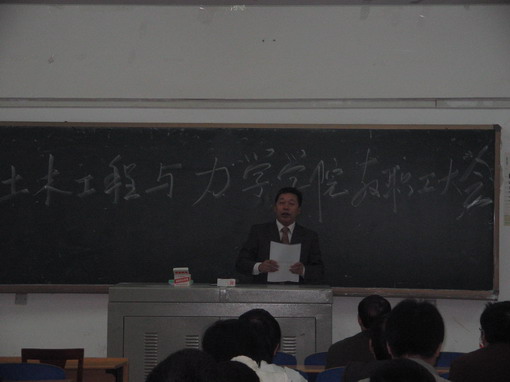 第二、学科引领,人才强院。通报了我院申报的土木工程一级学科硕士点已经通过湖南省学位办的评审,并对学位申报工作中作出突出贡献的老师进行了表扬。近期将召开学科发展规划会议,为两年后申报土木工程一级学科博士点提前做好准备。