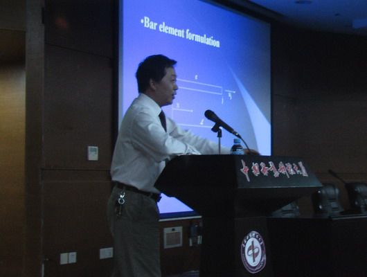 学术报告会由贺国京教授主讲,贺教授首先介绍了他近段时间赴欧美国家考察的情况,重点介绍了美国、瑞典等西欧国家的结构工程实验室建设情况,还结合土木学院正在建设的土木工程结构实验室,分析了结构抗震试验系统的现状,提出了我院建立抗震实验台的初步想法;贺教授还就“结构动力分析的动态有限元方法”进行了介绍;最后与在场的老师和同学就实验室建设和结构动力分析相关问题进行了讨论。